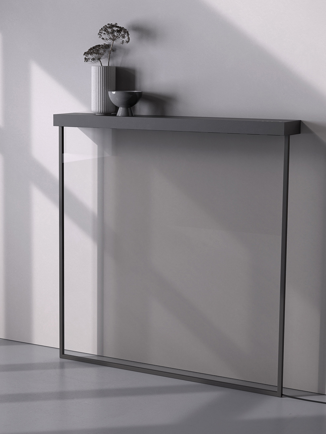 We have designed a home display that looks as good switched off as it looks switched on. A true breakthrough in the rather stale home display product category. A new format for new possibilities: OLED Shelf is intended to break the rules of the classic TV archetype – However, the departure from the classic 16:9 format not only serves formal aesthetics, but it also offers entirely new possibilities in the user experience while leaning on the most natural form of a shelf.